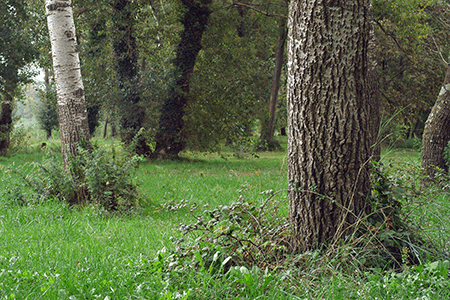「間伐」と呼ばれる間引き作業を行い、林内環境をよくして樹木が健康に育つようにします。間伐をすることにより地面に日光が差し込み、さまざまな草木が新たに生え、それを食料とする昆虫や鳥が生育するようになるなど生物の多様性が向上します。